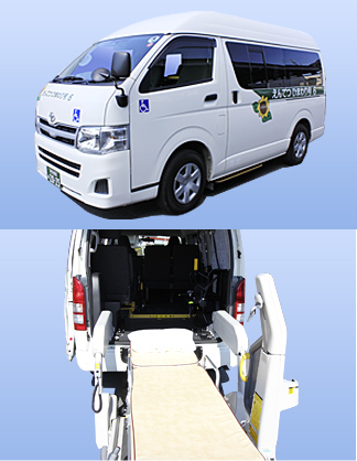 車椅子のに乗ったまま乗車できる車両です。