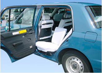 | 乗り降りし易いよう改良を加えた小型タクシー 高齢者・車いすの方が乗り降りし易いよう