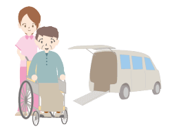 | 介護タクシーとは、車イスごとご利用できるタクシーで、公共交通機関のご利用に不安をお持ちの方を対象に、どのような目的にもご利用可能な完全予約制のタクシーです。 |